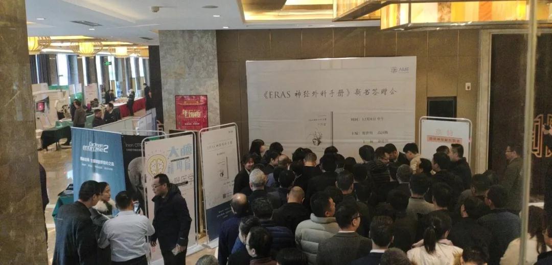 會上,AME汪道遠社長、高國棟教授、賀世明教授為活動揭幕。隨后還舉行了《ERAS神經(jīng)外科手冊》簽贈活動。此書是我國首本將ERAS運用于神經(jīng)外科后編著出來的手冊,在場的同仁期望頗高。活動一開始,大家排起了長隊,希望獲得各位專家的親筆簽名。在現(xiàn)場,大家就書中熱點展開討論。