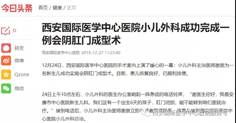 12月24日,西安國際醫(yī)學中心醫(yī)院的手術室內(nèi)上演了暖心的一幕:小兒外科主治醫(yī)師謝崇為一名新生兒成功實施會陰肛門成型術。目前,患兒恢復良好,已順利排便。