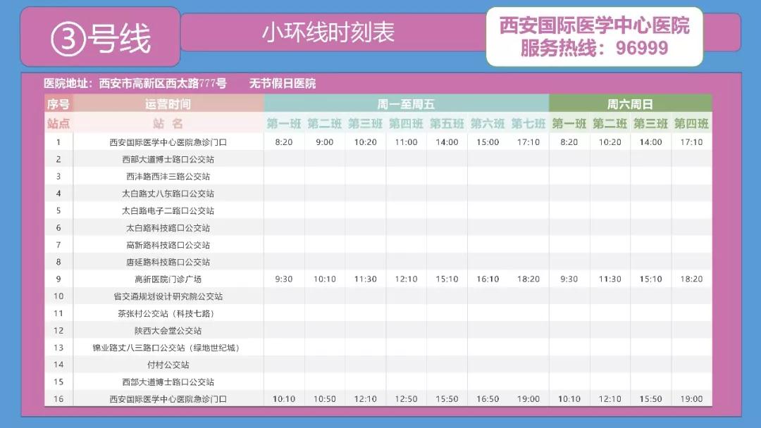 備注:西安國(guó)際醫(yī)學(xué)中心醫(yī)院——高新醫(yī)院運(yùn)行時(shí)間為:周一至周五。