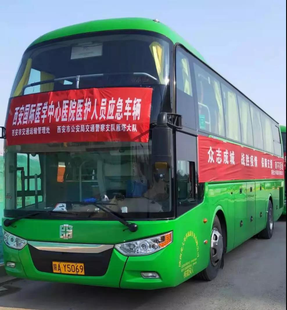 陜西光大外事旅游車務(wù)有限公司也無償為西安國際醫(yī)學(xué)中心醫(yī)院提供8輛大巴車,用于接送醫(yī)務(wù)人員上下班,并為醫(yī)護(hù)人員提供點(diǎn)對(duì)點(diǎn)的通勤服務(wù)。