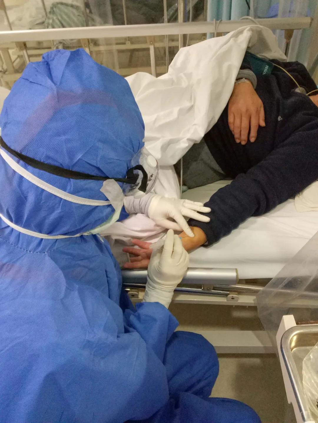 病區(qū)當(dāng)天收治了36位重癥患者,雖然早有準備,但現(xiàn)實比張波想象的復(fù)雜。N95口罩和外科口罩、帽子、防護服、手套、長靴套、隔離衣、眼罩……層層防護服下,張波的視覺、聽覺、觸覺都受到影響。視線受限于起霧的護目鏡,寬大厚實的手掌戴了好幾層手套,原本動脈采血、靜脈采血、留置針穿刺、輸液以及生命體征測量等熟悉的基本治療,操作起來異常艱難。