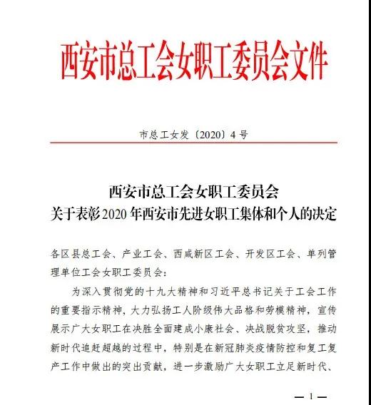 西安市總工會在《關于表彰2020年西安市先進女職工集體和先進個人的決定》指出,在抗擊新冠肺炎疫情的關鍵時刻,薛妍副院長主動請纓馳援武漢、隨州兩地。在戰(zhàn)斗中時刻以高度的責任意識和擔當精神做好每項工作。在武漢第八醫(yī)院,她參與專家組工作,規(guī)劃救治重點及工作流程,制定診療方案,保證各項工作順利展開。在隨州市中心醫(yī)院,她負責醫(yī)療隊的后勤保障以及隊員們的衣食住行,被隨州市委授予“抗擊新冠肺炎疫情先進個人”榮譽稱號。