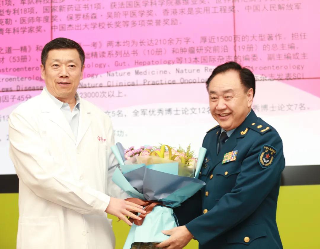 尹強院長主持了專題報告會;消化病醫(yī)院執(zhí)行院長韓國宏為樊代明院士獻花。