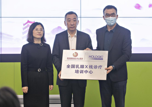 會(huì)議第一項(xiàng),豪洛捷公司為西安國(guó)際醫(yī)學(xué)中心醫(yī)院影像診療中心進(jìn)行了授牌,宣布影像診療中心成為全國(guó)乳腺X線診療培訓(xùn)中心,將為培養(yǎng)乳腺X線診療人員建立開放學(xué)習(xí)的平臺(tái)。