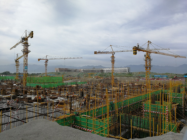 工地上,一片繁忙景象,西安國際醫(yī)學(xué)中心正在如火如荼的建設(shè)中,項目部工作人員熱情的歡迎前來義診的醫(yī)務(wù)人員,工地上,也早早的掛起了活動橫幅。