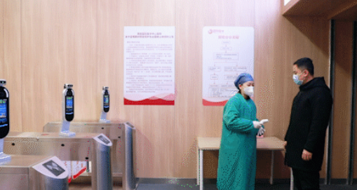 在地鐵閘機(jī)口,西安國際醫(yī)學(xué)中心醫(yī)院設(shè)立預(yù)檢通道,醫(yī)務(wù)人員為所有進(jìn)入院區(qū)人員測量體溫,并查驗(yàn)“一碼通”。健康碼為綠碼、體溫<37.3℃且無流行學(xué)史的方可進(jìn)入,若體溫≥ 37.3℃、有呼吸道癥狀或流行病學(xué)史、健康碼為黃色或紅色的人員由預(yù)檢醫(yī)務(wù)人員登記完成后帶至發(fā)熱門診。