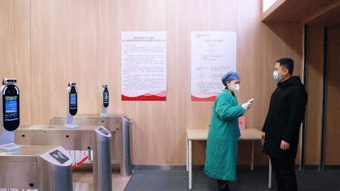 在地鐵閘機(jī)口,西安國際醫(yī)學(xué)中心醫(yī)院設(shè)立預(yù)檢通道,醫(yī)務(wù)人員為所有進(jìn)入院區(qū)人員測量體溫,并查驗(yàn)“一碼通”。健康碼為綠碼、體溫<37.3℃且無流行學(xué)史的方可進(jìn)入,若體溫≥ 37.3℃、有呼吸道癥狀或流行病學(xué)史、健康碼為黃色或紅色的人員由預(yù)檢醫(yī)務(wù)人員登記完成后帶至發(fā)熱門診。