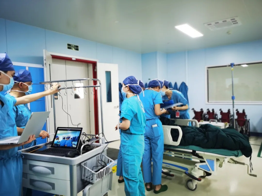 在神經(jīng)內(nèi)科病區(qū)住院的李爺爺突然發(fā)生心臟驟停,值班護(hù)士立即進(jìn)行心肺復(fù)蘇并呼叫消控中心請(qǐng)求啟動(dòng)999急救。短短三分鐘內(nèi),急救小組攜帶藥品及器械趕來(lái)。凌晨三點(diǎn),在醫(yī)護(hù)人員的全力搶救下,70歲的李爺爺終于恢復(fù)自主呼吸。