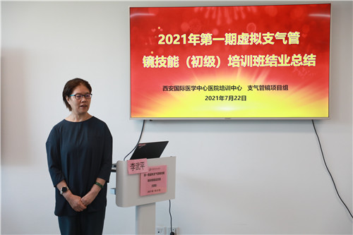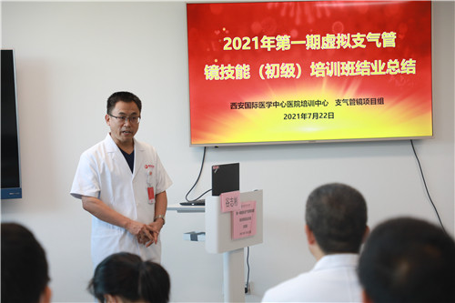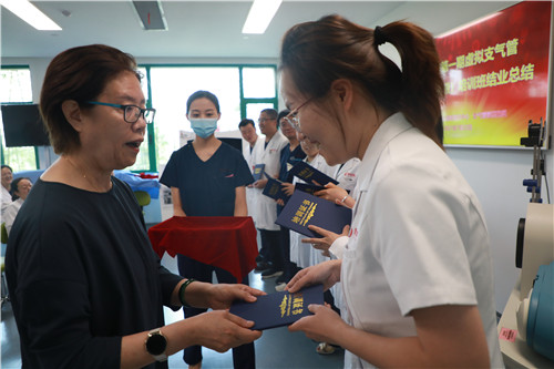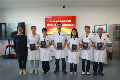 在結(jié)業(yè)典禮上,李武平院長(zhǎng)頒發(fā)培訓(xùn)證書(shū),對(duì)結(jié)業(yè)學(xué)員表示祝賀;對(duì)來(lái)自支氣管鏡檢查室、培訓(xùn)中心兼職教師谷志彬教授的專業(yè)素養(yǎng)與辛苦付出表示贊揚(yáng);對(duì)康福霞主任帶領(lǐng)下的培訓(xùn)中心工作團(tuán)隊(duì)給予高度肯定。同時(shí)李院長(zhǎng)指出:“每一段看似結(jié)束的培訓(xùn)旅程、都應(yīng)是每位學(xué)員職業(yè)生涯新的開(kāi)始。國(guó)際醫(yī)學(xué)培訓(xùn)中心作為醫(yī)生的“圖書(shū)館”,應(yīng)當(dāng)時(shí)刻了解臨床所需,充分利用各種高端模擬設(shè)備,建立完善的課程體系,助力更多臨床醫(yī)生時(shí)刻充電;學(xué)員應(yīng)當(dāng)積極參加并珍惜每一次培訓(xùn)機(jī)會(huì),豐滿自己羽翼?!?