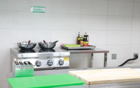 在“愛心廚房”我們發(fā)現(xiàn),廚房配備了廚具、電器設備、鍋碗瓢盆,常用調(diào)料等。