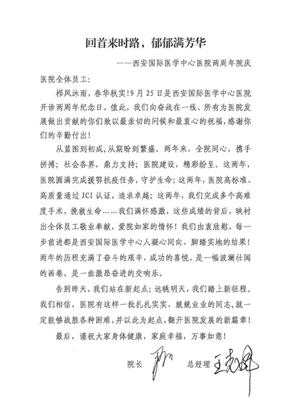 2021年9月25日是西安國際醫(yī)學中心醫(yī)院兩周歲生日!