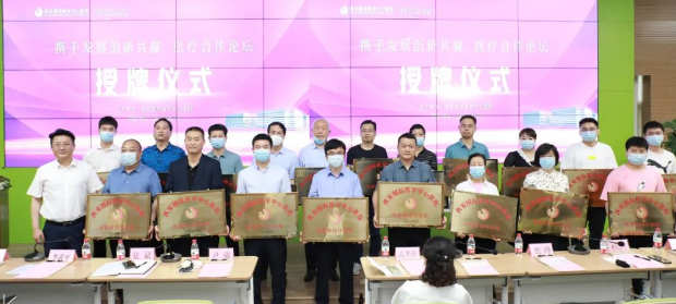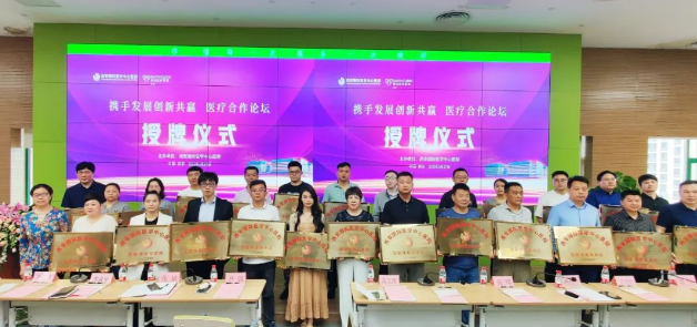 隨后尹強(qiáng)院長與各機(jī)構(gòu)代表完成合作簽約儀式,李武平副院長、張斌副院長為參會的各家醫(yī)療機(jī)構(gòu)授牌并合影留念。