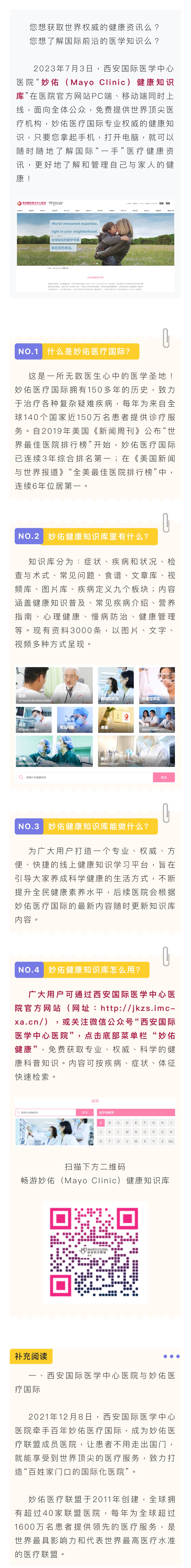 隨時隨地獲取國際一手健康知識!西安國際醫(yī)中心醫(yī)院“妙佑健康知識庫”全新上線!