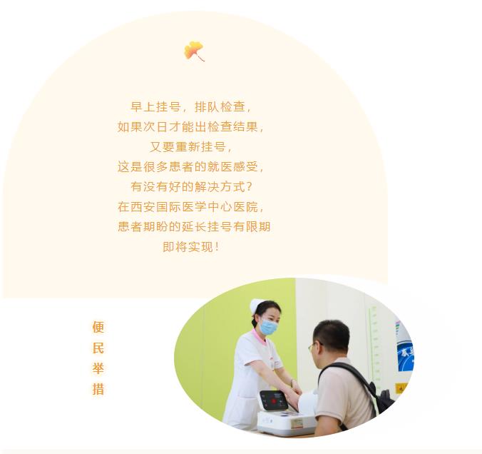 西安國際醫(yī)學(xué)中心醫(yī)院打破掛號診療當(dāng)日有效的慣例,創(chuàng)新推出“一次掛號三天有效”的舉措,進(jìn)一步優(yōu)化門診服務(wù)流程,降低患者就醫(yī)成本,改善患者就醫(yī)感受。自2023年8月7日起,患者掛號就診后,如果檢驗(yàn)、CT等輔助檢查結(jié)果當(dāng)天未出,三日內(nèi)再次在同院區(qū)、同專業(yè)就診免收掛號費(fèi),醫(yī)生免費(fèi)為患者解讀報(bào)告,提供治療建議。
