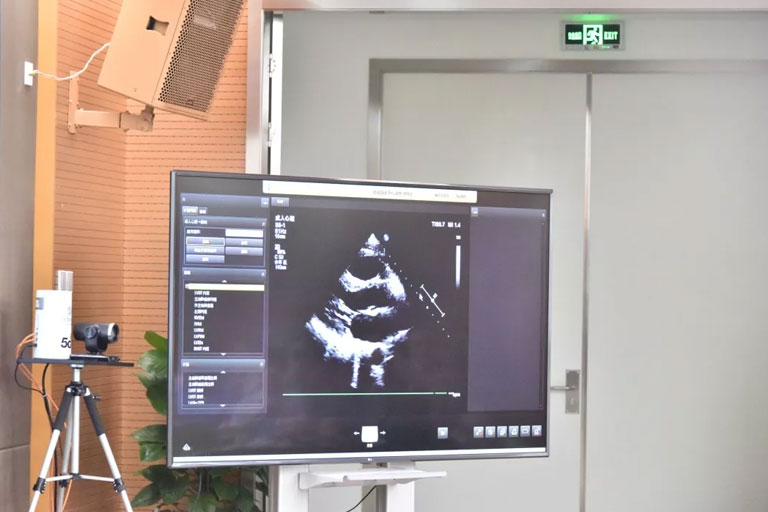 5G遠(yuǎn)程會診現(xiàn)場,西安國際醫(yī)學(xué)中心心內(nèi)科張衛(wèi)澤主任、超聲科陳姍姍主任打開4K高清顯示器,屏幕上立刻出現(xiàn)了商洛國際醫(yī)學(xué)中心的B超畫面,一位醫(yī)生正在為患者做心臟B超,隨著探頭的轉(zhuǎn)動,超聲機(jī)器上的畫面清晰可見,雖然兩家醫(yī)院相距一百多公里,但畫面流暢,沒一點拖沓。
